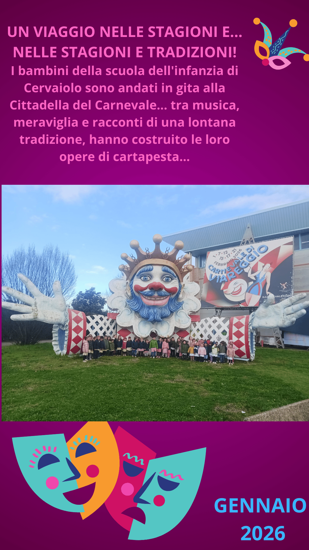 I bambini della scuola dell'infanzia di Cervaiolo sono andati in gita alla Cittadella del Carnevale... tra musica, meraviglia e racconti di una lontana tradizione, hanno costruito le loro opere di cartapesta...